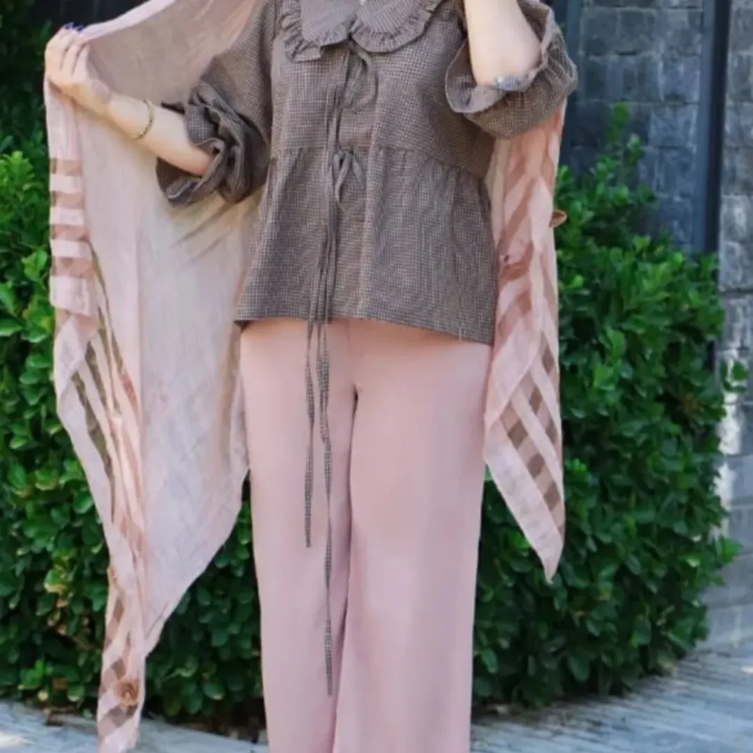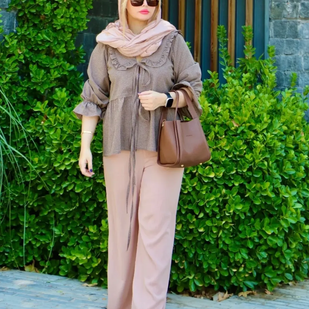 لطافت چین ها و با گرمای دلنشین قهوه ای، بدون آبرفت، سبک مناسب برای روزمره و استایل نیمه کژوال.